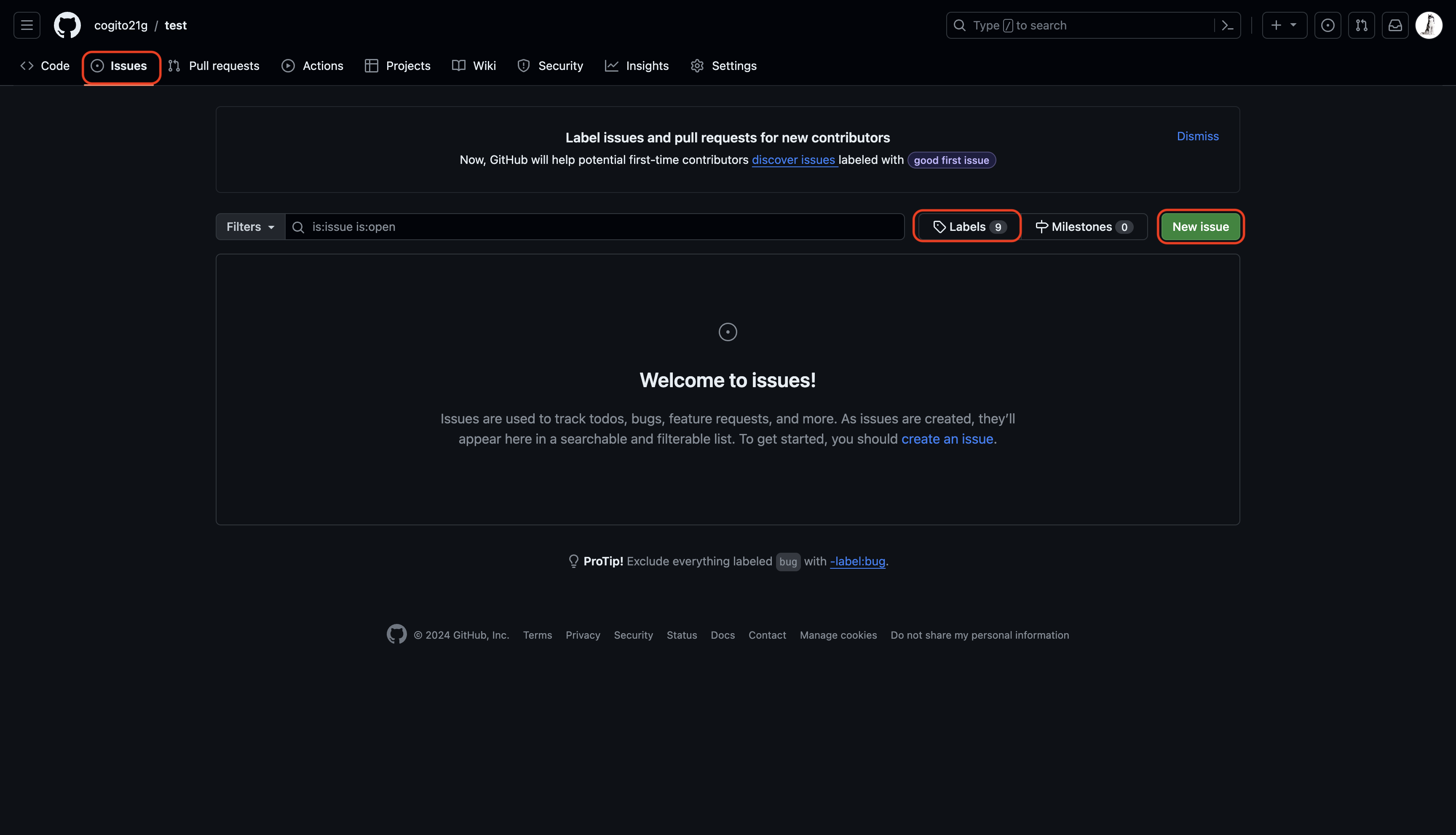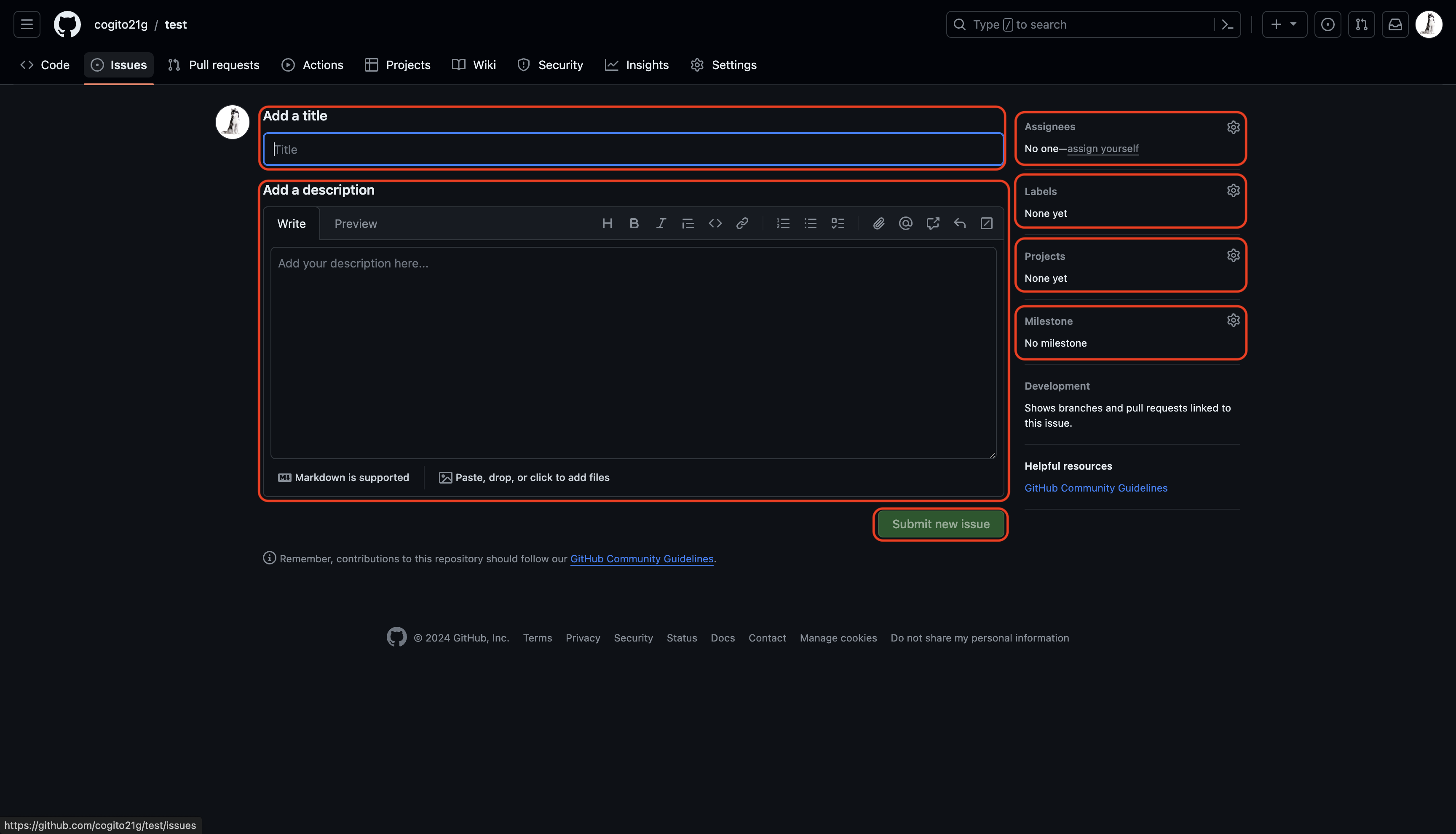 3. Issue 내용 입력 후 Submit new issue 클릭