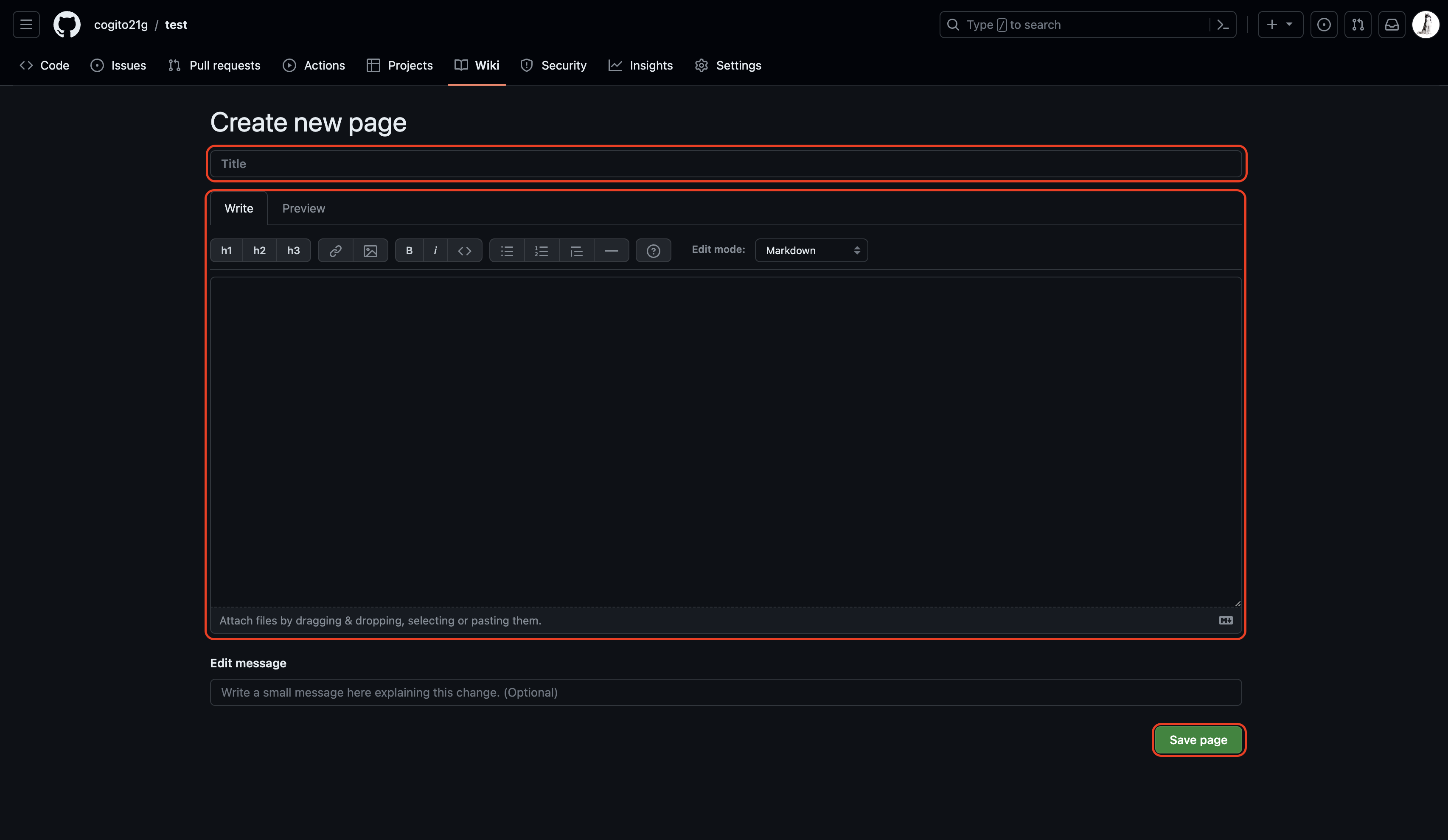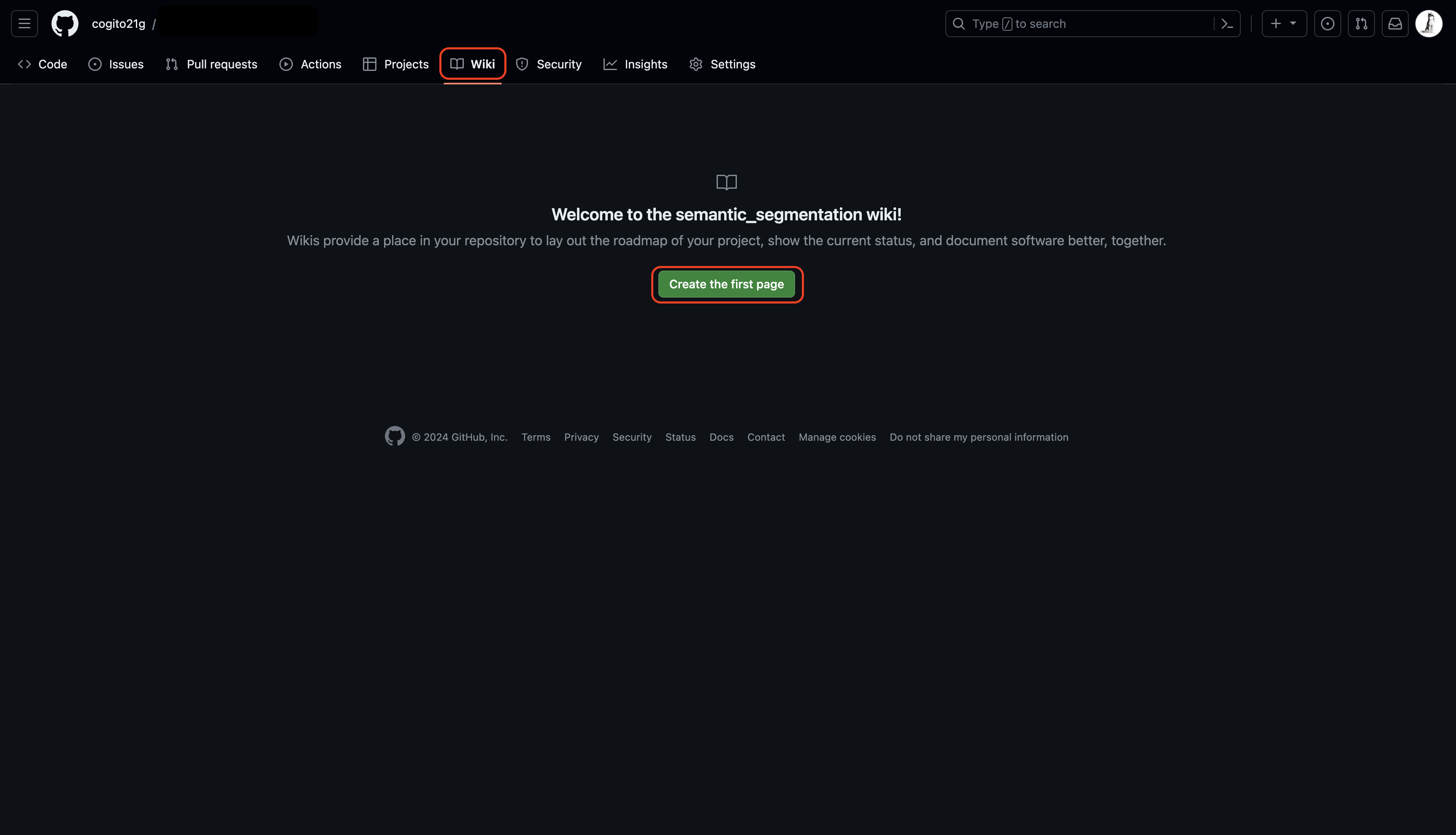 1. Remote Repository 내의 Wiki 탭 선택 후 Create the first page