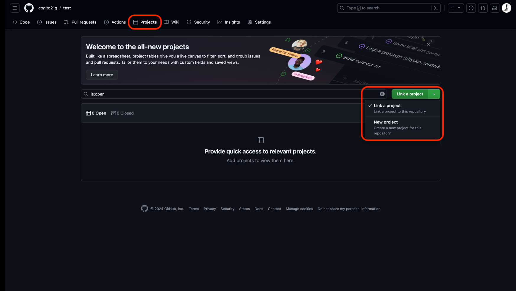 - Link a project를 New Project로 변경 후 클릭