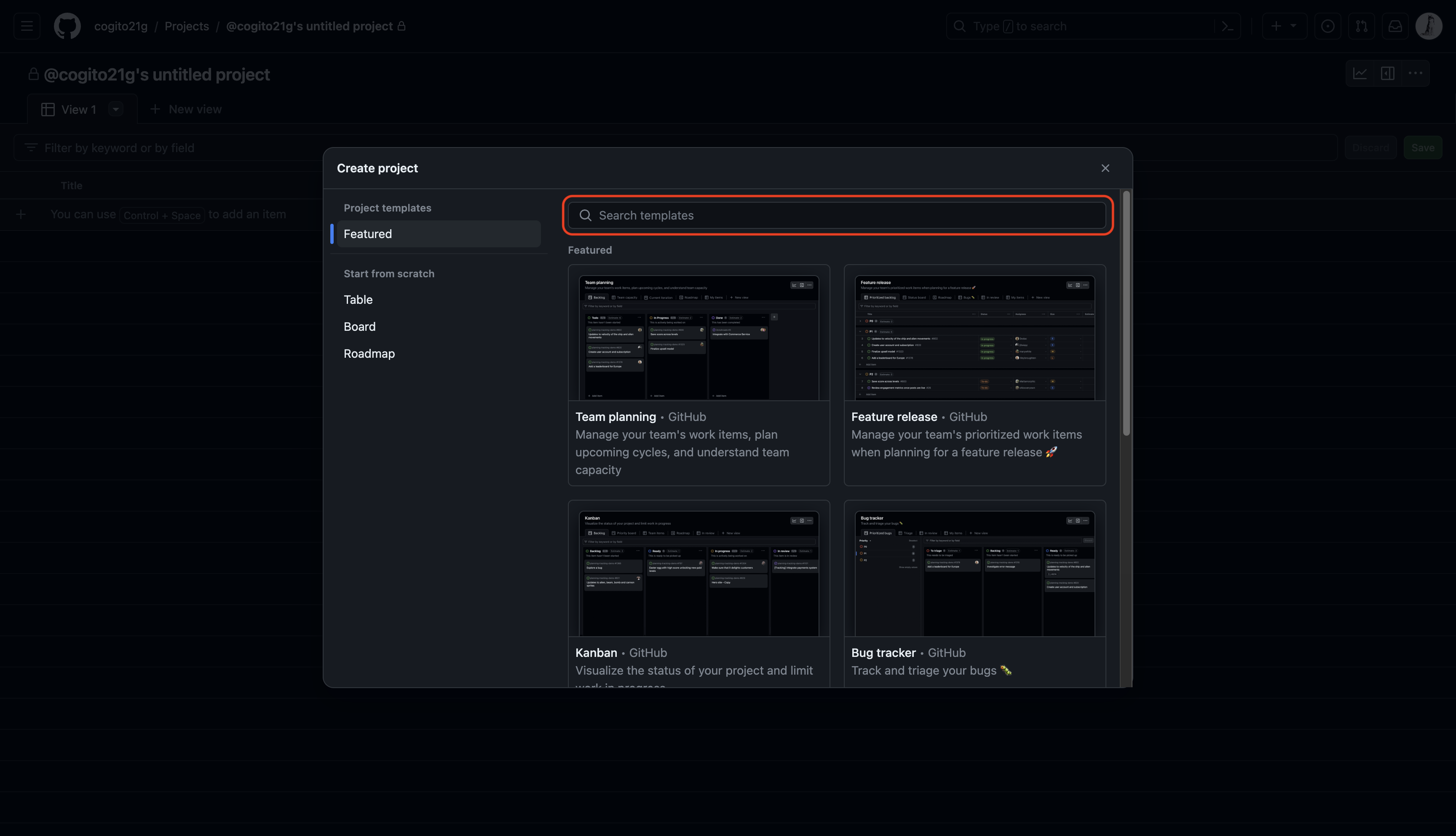 2. 필요한 templates 검색 후 클릭(Team Planning, Kanban)