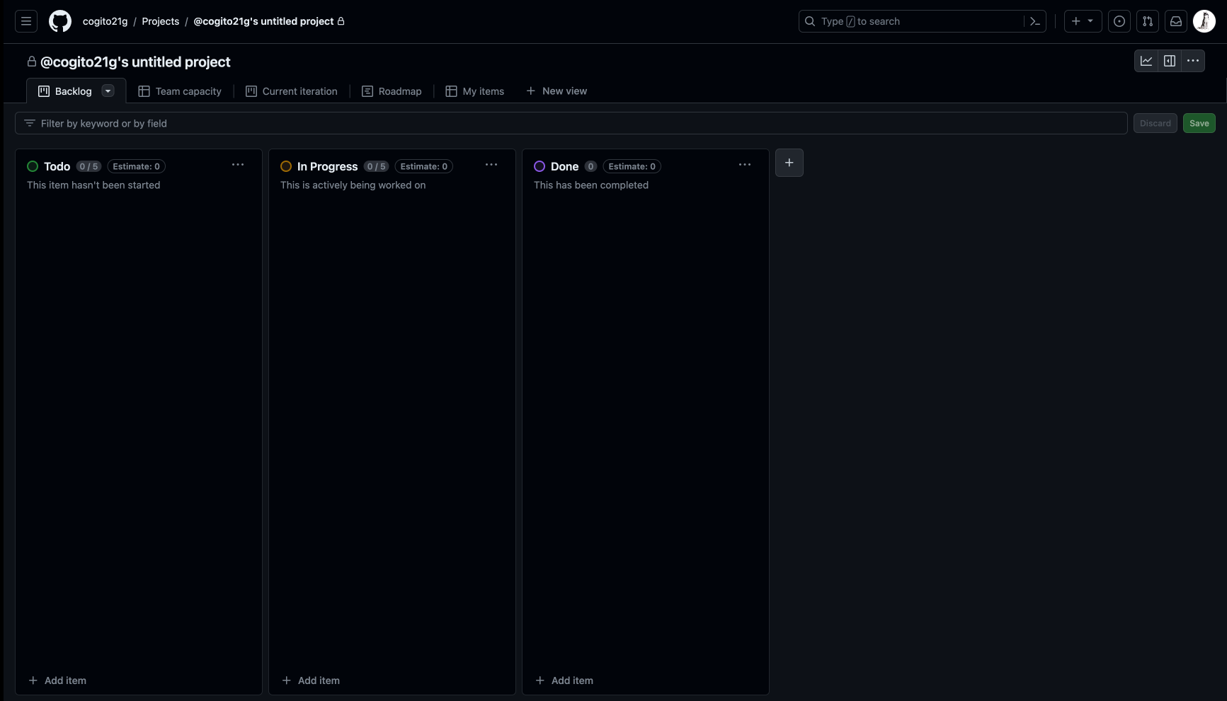 - Todo: 모든 Issue, 해야할 것, 새로운 기능 및 기능 수정, 모든 Pull Request