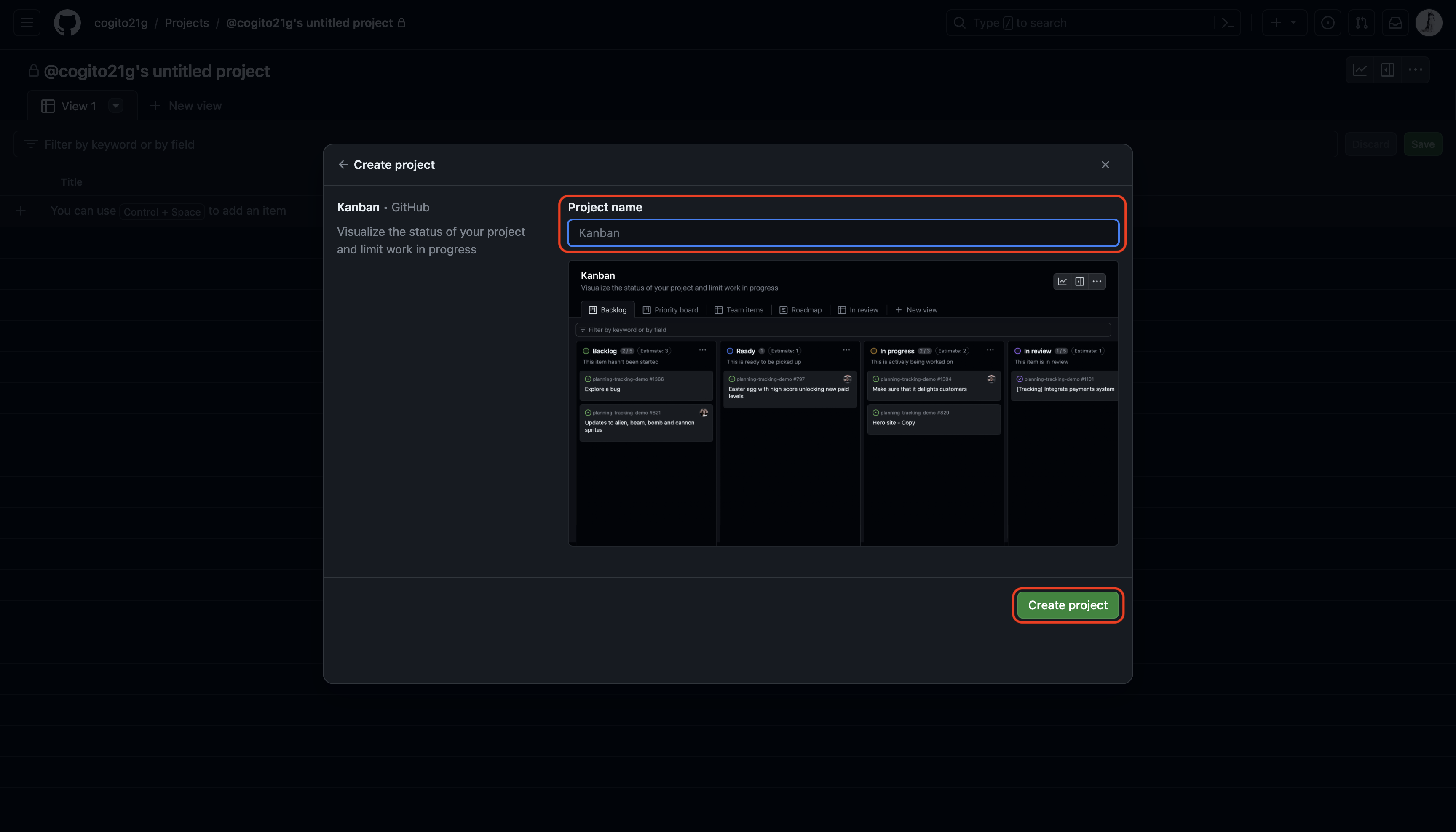 3. Project name 항목에 프로젝트명 입력 후 Create project 클릭