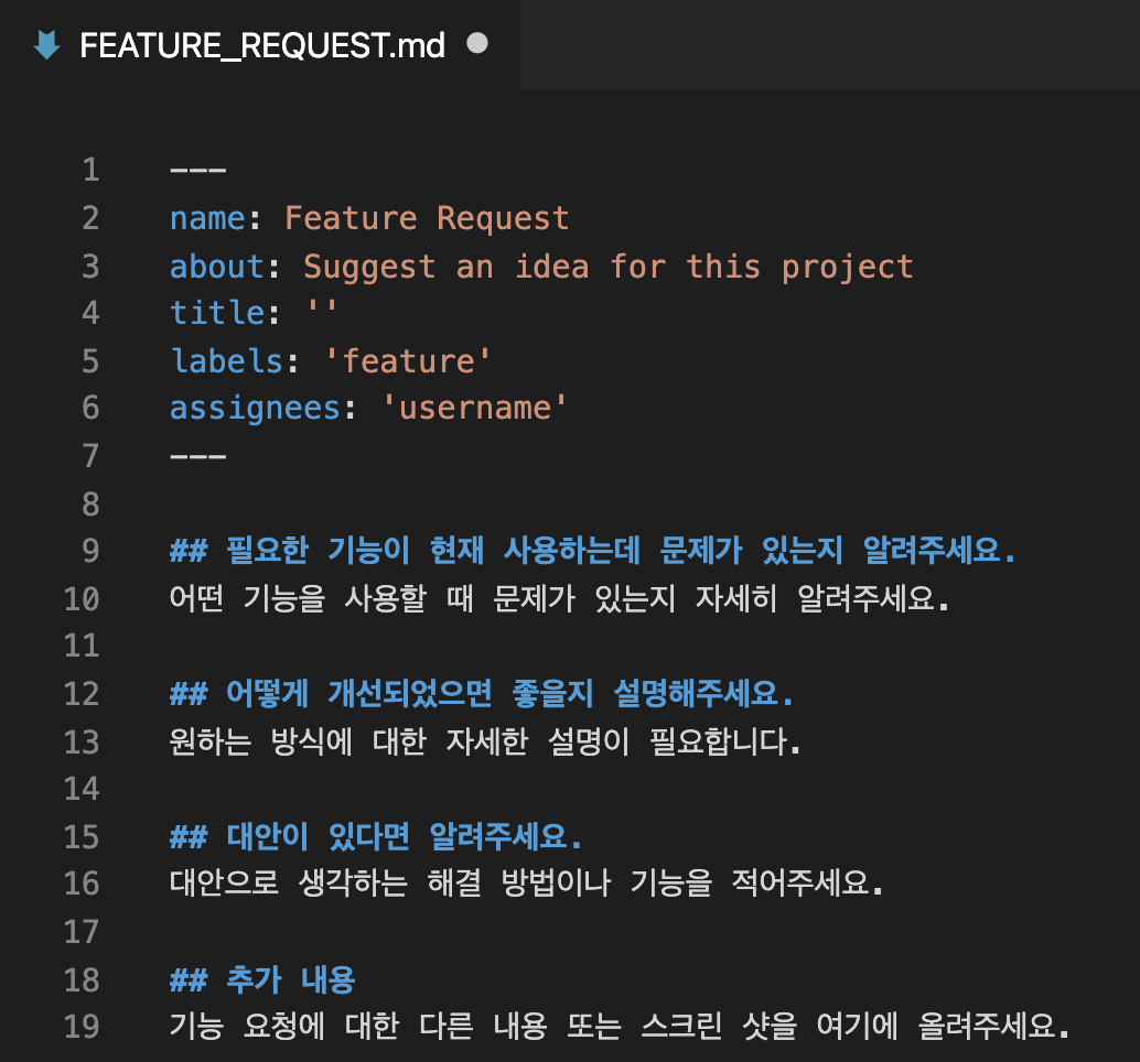 +) .github 폴더에 issue_template.md 생성: Issue 생성시 양식 자동 생성