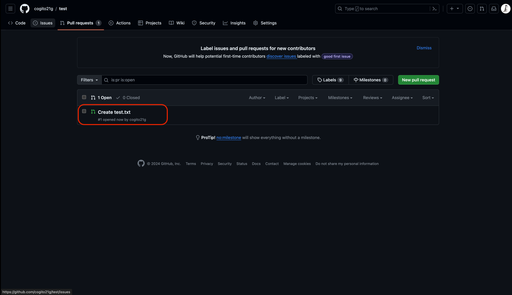 4. 생성된 Pull Request 확인후 선택