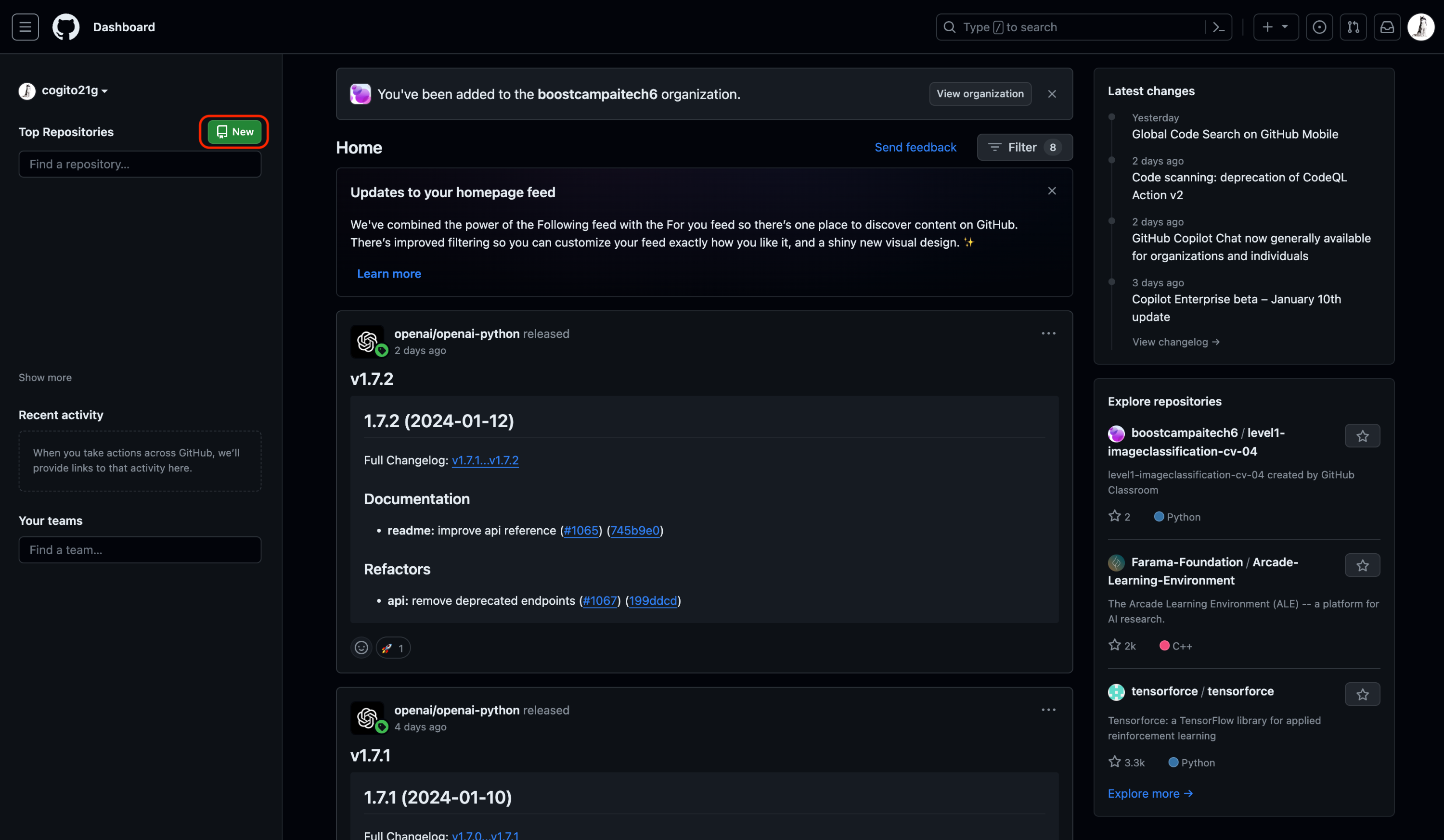 - In Progress: 새로 열린 Pull Request, Issue
