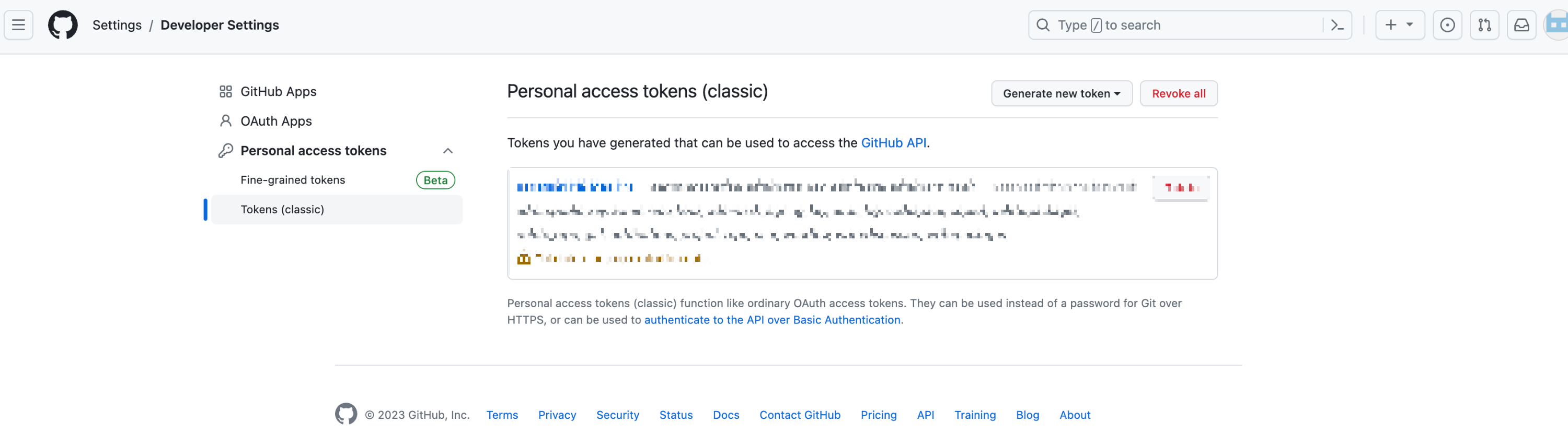 3) 좌측 탭의 Personal access token > Token(classic) 선택 후 Generate new token 선택